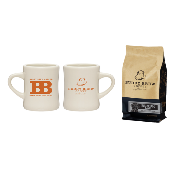 Branded Diner Mug: Select between our classic Brew Good Do Good Black Diner Mug or the Natural Classic Buddy Brew Branded Diner Mug, both designed for enjoying your coffee in style and comfort.
